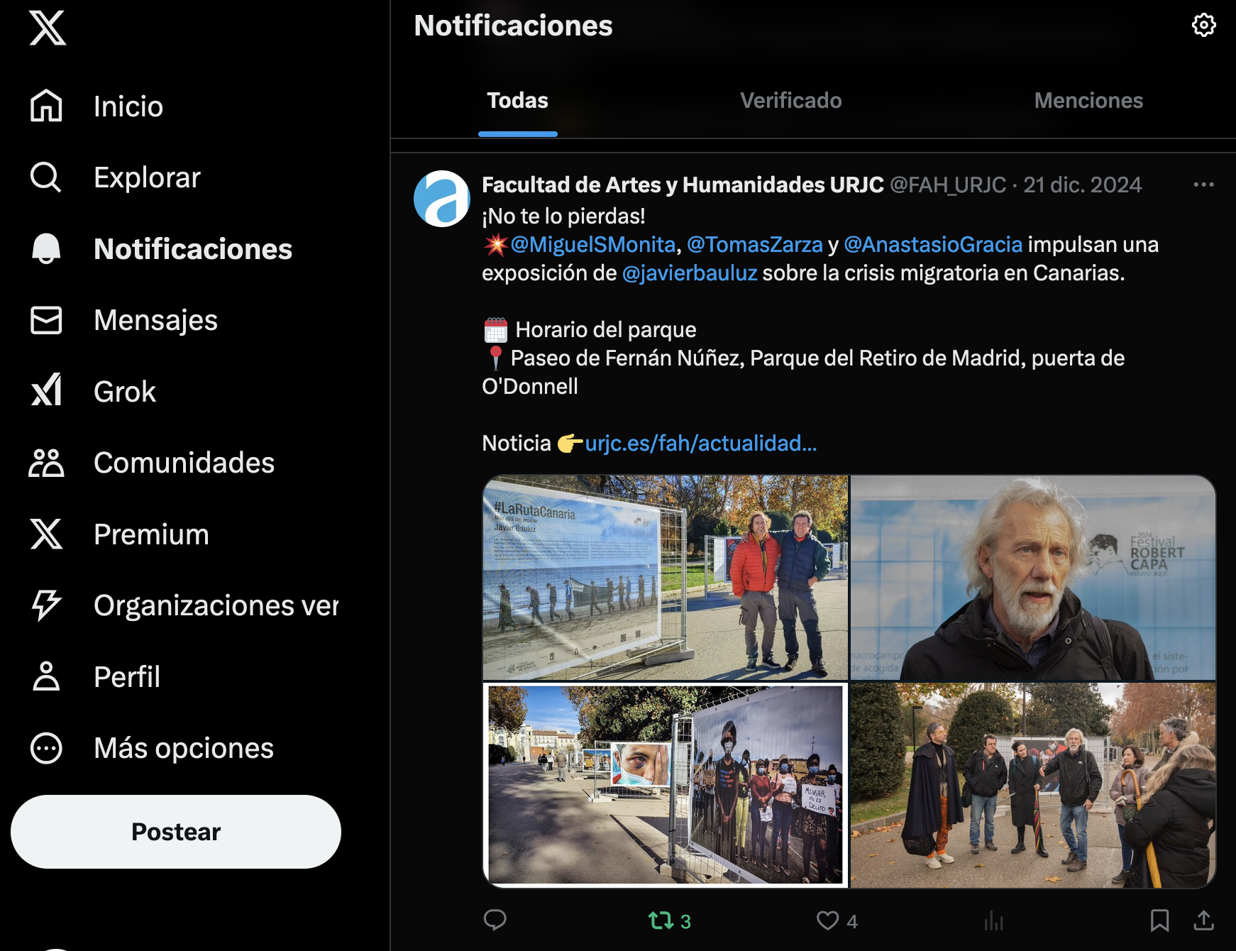 - Comisario La Ruta Canaria. Javier Bauluz. Parque del Retiro. 2025. https://festivalrobertcapaestuvoaqui.es/evento/la-ruta-canaria/