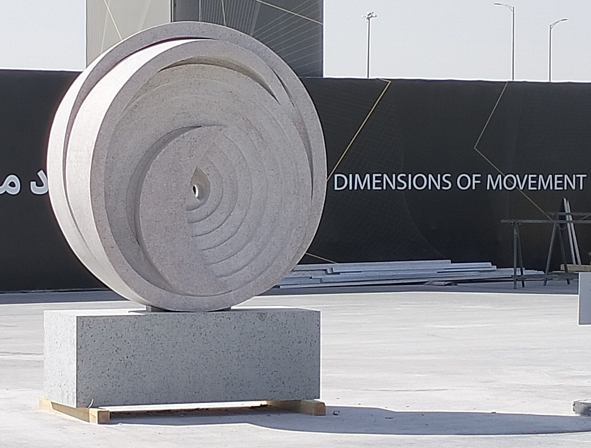 A la izquierda se muestra la obra escultórica Limitless Dreams, creada in situ en la ciudad de Riad, para la 5.ª edición Tuwaiq Sculpture 2024. Se trata de un simposio anual que ha reunido proyectos de artistas internacionales, y que forma parte del programa de arte público Riyahd Art, apoyado por la Comisión Real para la ciudad de Riad, Arabia Saudita, dentro del plan gubernamental Visión 2030.